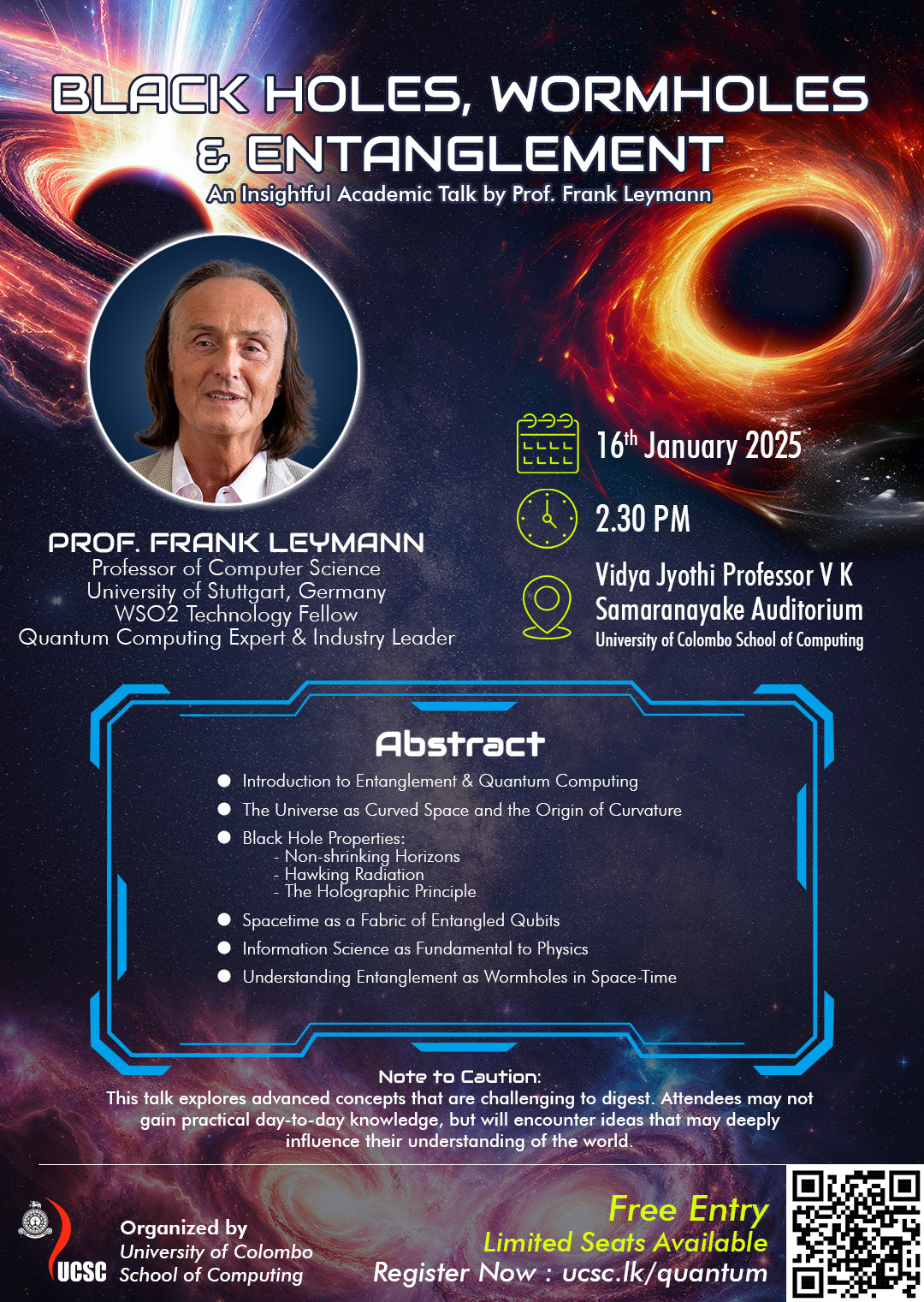 Guest Lecture on Quantum Computing by Prof. Frank Leymann - Friday, 16th of January 2025 @ UCSC Auditorium by Lasanthi De Silva - Tuesday, 13 January 2026, 11:10 AM Number of replies: 0 Permalink